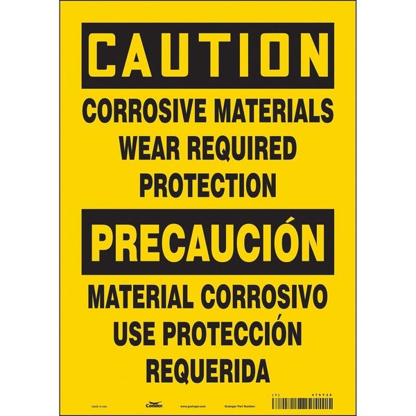 Chemical Sign, Vertical Rectangle, Number of Printed Sides 1, English, Spanish, Sign Format Traditional OSHA, Sign Legend Corrosive Materials Wear Required Protection/Material Corrosivo Use Proteccion Requerida, Sign Legend Background Color Yellow, Sign Legend Style Text