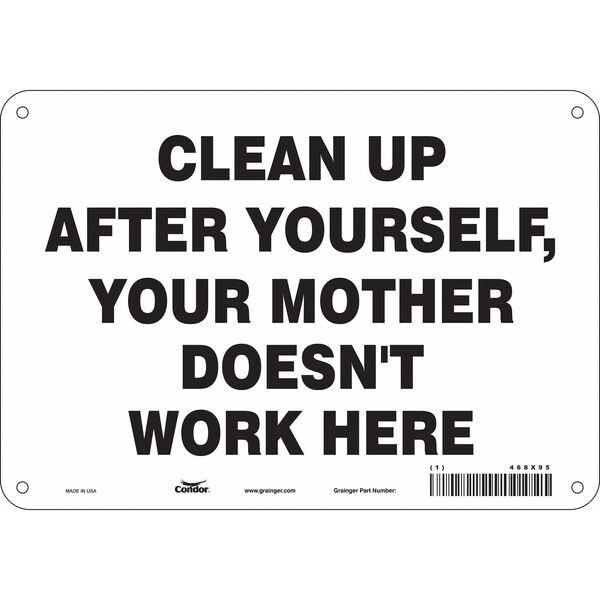 Safety Sign, Vertical Rectangle, Number of Printed Sides 1, English, Sign Format Other Format, Sign Legend Clean Up After Yourself, Your Mother Doesn't Work Here, Sign Legend Background Color White, Sign Legend Style Text