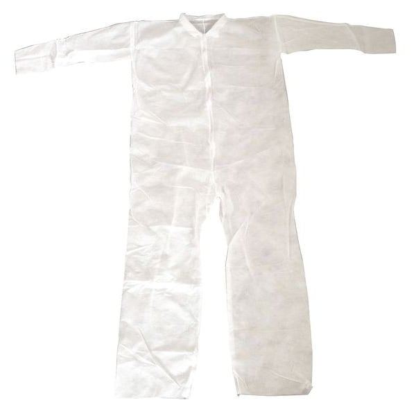 Coveralls, Ankle Closure Open, ANSI 107 Performance Class Not Applicable, Anti-Static No, Attached Glove Material Not Applicable, Attached Glove Style Not Included, Attached Hood No, Breathable Back Style Not Applicable, Chest Size - Maximum 42 1/2 in, Chest Size - Minimum 39 1/2 in, Clean Process Status Not Clean Processed, Closure Features Zipper, Closure Type Zipper, Collar Style Mandarin, Color White, Coverall Style Collared, Cuff Style Open, EPA Protection Level Not Applicable