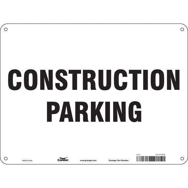 Construction Parking Sign, 18" Height, 24" Width, Polyethylene, Horizontal Rectangle, English