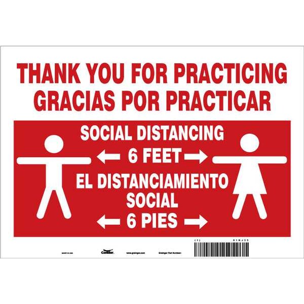 COVID 19 Social Distancing Sign, Sign Subject Matter Social Distancing, Height 7 in, Width 10 in, Sign Material Vinyl, Sign Mounting Style Adhesive Surface, Header No Header, Legend Thank You For Practicing Social Distancing 3 Feet Gracias Por Practicar El Distanciamiento Social 3 Pies, Printed Language English, Spanish