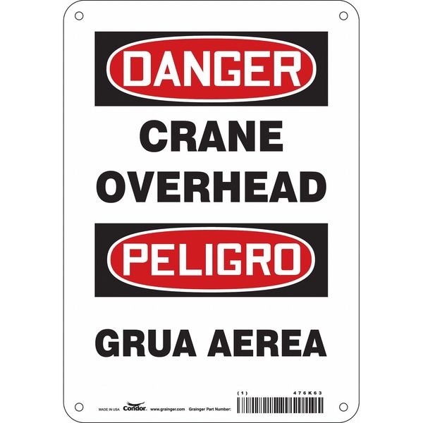 Danger, CRANE OVERHEAD/GRUA AEREA, 7 in W x 10 in H, Horizontal Rectangle, Polyethylene
