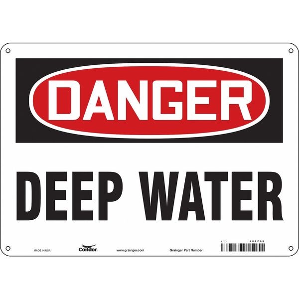 Safety Sign, Horizontal Rectangle, Number of Printed Sides 1, English, Sign Format Traditional OSHA, Sign Legend Deep Water, Sign Legend Background Color White, Sign Legend Style Text