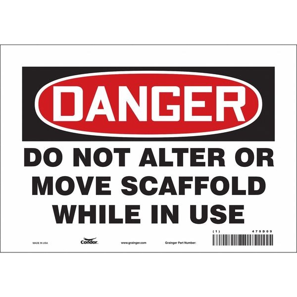 Danger, DO NOT ALTER OR MOVE SCAFFOLD WHILE IN USE, 10 in W x 7 in H, Rectangle, Vinyl, 479D09