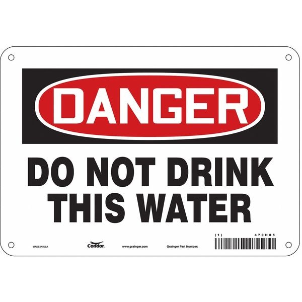 Danger, Do Not Drink This Water, 10 in W x 7 in H, Vertical Rectangle, Aluminum, 470H85