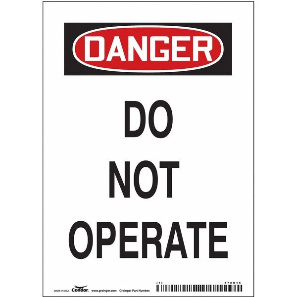 Safety Sign, Vertical Rectangle, Number of Printed Sides 1, English, Sign Format Traditional OSHA, Sign Legend Do Not Operate, Sign Legend Background Color White, Sign Legend Style Text