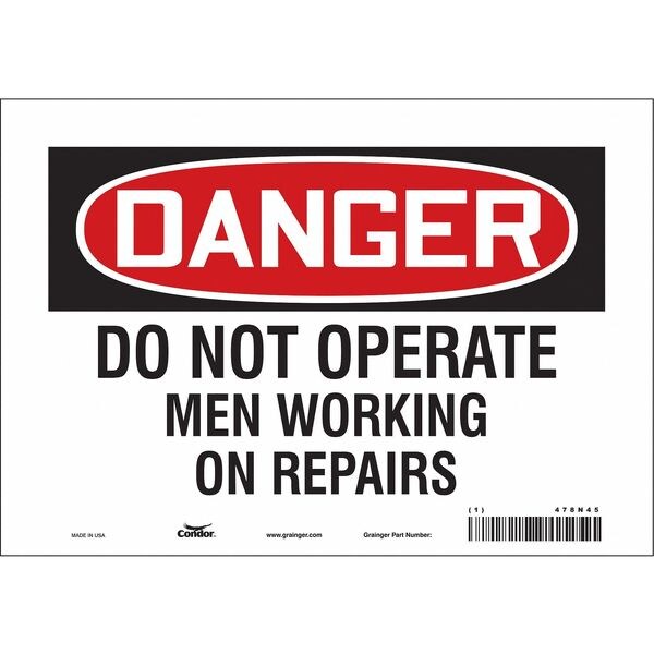 Danger, DO NOT OPERATE MEN WORKING ON REPAIRS, 10 in W x 7 in H, Vertical Rectangle, Vinyl, 478N45