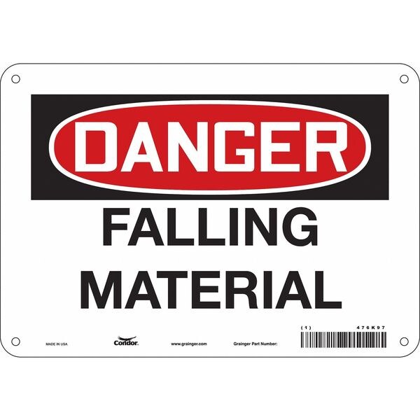 Danger, FALLING MATERIAL, 10 in W x 7 in H, Vertical Rectangle, Polyethylene, 476K97