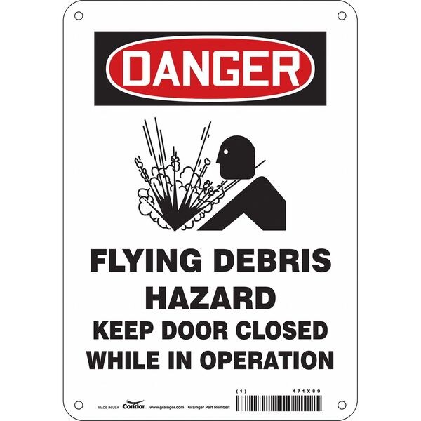 Danger, Flying Debris Hazard Keep Door Closed While In Operation, 7 in x 10 in, Polyethylene, 471X89