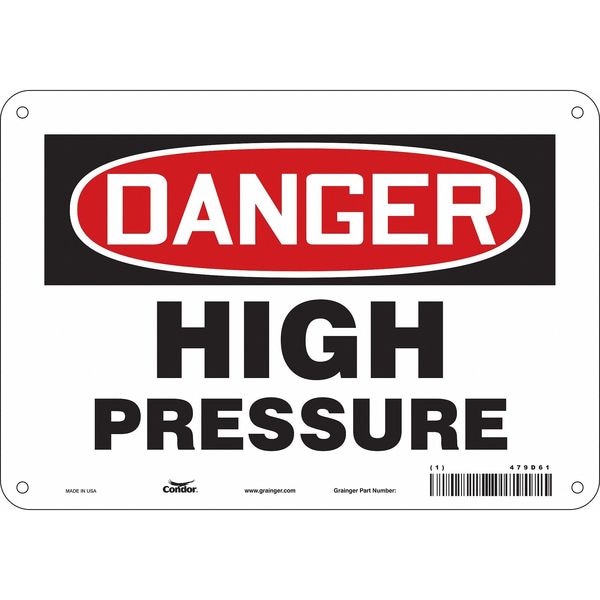 Danger, HIGH PRESSURE, 10 in W x 7 in H, Vertical Rectangle, Polyethylene, 479D61