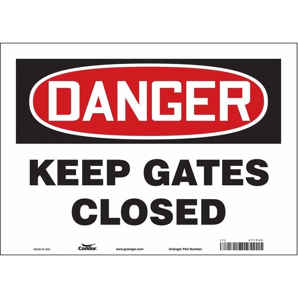 Danger, Keep Gates Closed, 14 in W x 10 in H, Horizontal Rectangle, Vinyl, 471Y05