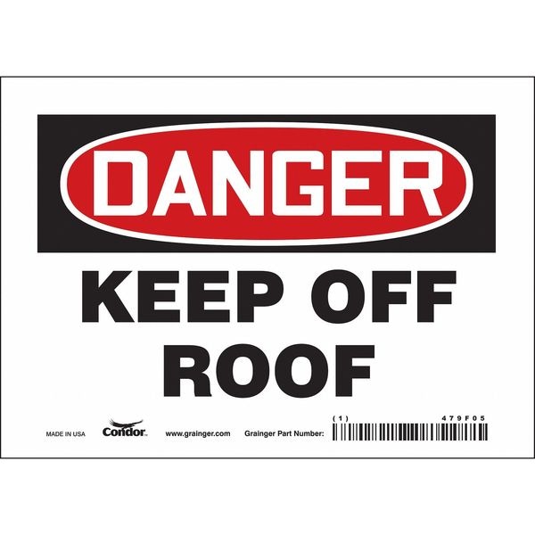 Danger, KEEP OFF ROOF, 7 in W x 5 in H, Horizontal Rectangle, Vinyl, 479F05