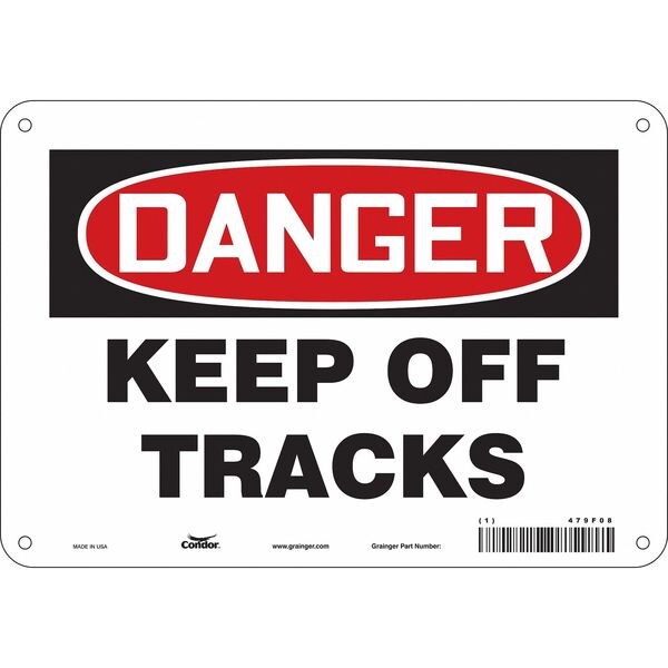 Danger, KEEP OFF TRACKS, 10 in W x 7 in H, Vertical Rectangle, Aluminum, 479F08