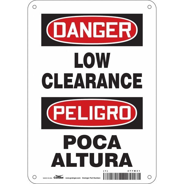 Danger, LOW CLEARANCE/POCA ALTURA, 7 in W x 10 in H, Horizontal Rectangle, Polyethylene, 477M31