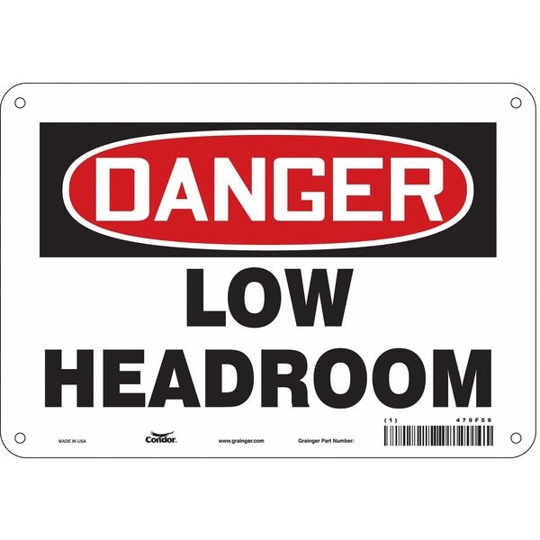 Danger, LOW HEADROOM, 10 in W x 7 in H, Vertical Rectangle, Aluminum, 479F59