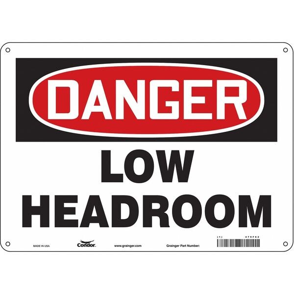 Danger, LOW HEADROOM, 14 in W x 10 in H, Horizontal Rectangle, Polyethylene, 479F62