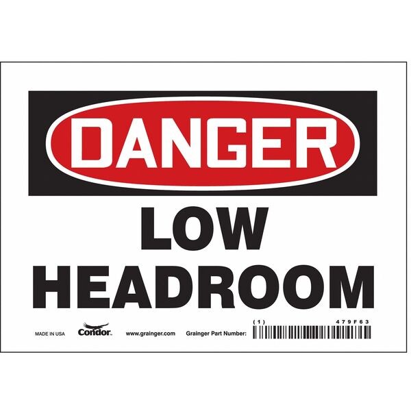 Danger, LOW HEADROOM, 7 in W x 5 in H, Horizontal Rectangle, Vinyl, 479F63