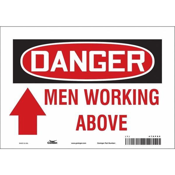 Danger, MEN WORKING ABOVE, 10 in W x 7 in H, Vertical Rectangle, Vinyl, 478P80