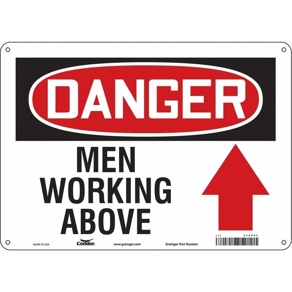 Danger, MEN WORKING ABOVE, 14 in W x 10 in H, Horizontal Rectangle, Aluminum, 478P83