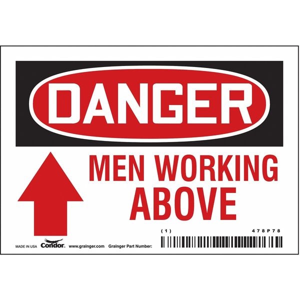 Danger, MEN WORKING ABOVE, 5 in W x 3 1/2 in H, Horizontal Rectangle, Vinyl, 478P78