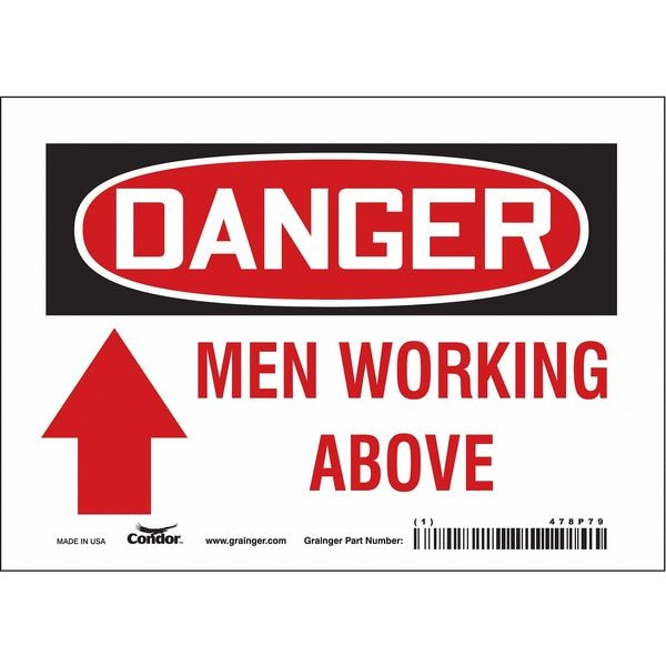 Danger, MEN WORKING ABOVE, 7 in W x 5 in H, Horizontal Rectangle, Vinyl, 478P79