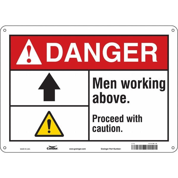 Danger, MEN WORKING ABOVE. PROCEED WITH CAUTION., 14 in W x 10 in H, Polyethylene, 478R10