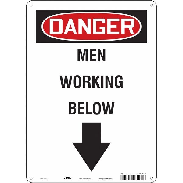 Danger, MEN WORKING BELOW, 10 in W x 14 in H, Vertical Rectangle, Aluminum, 478R16
