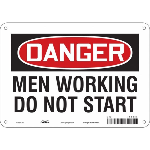 Danger, MEN WORKING DO NOT START, 10 in W x 7 in H, Vertical Rectangle, Polyethylene, 478R33