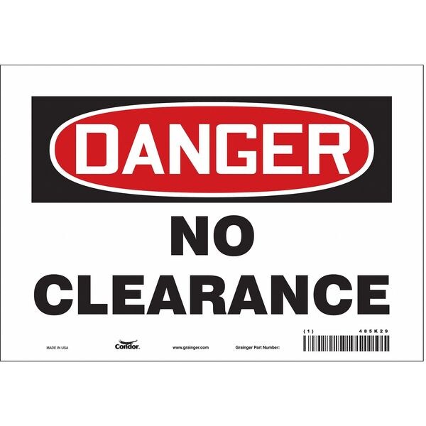 Danger, NO CLEARANCE, 10 in W x 7 in H, Vertical Rectangle, Vinyl, 485K29