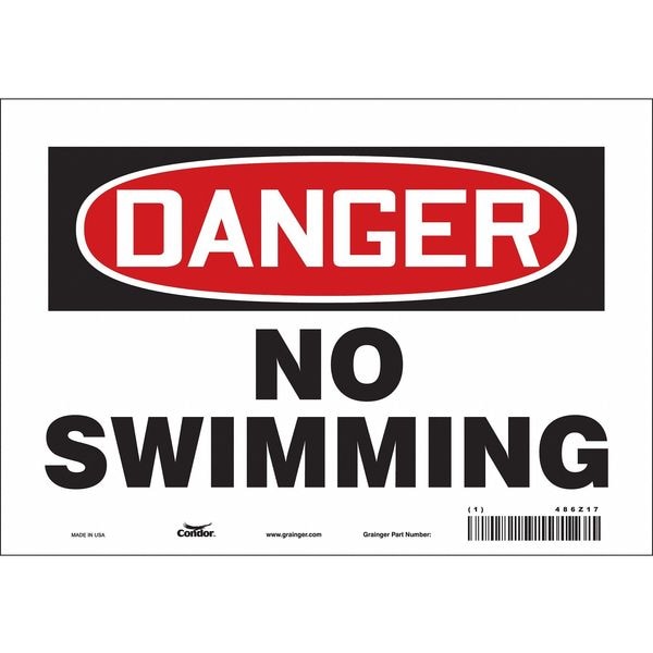 Danger, NO SWIMMING, 10 in W x 7 in H, Vertical Rectangle, Vinyl, 486Z17