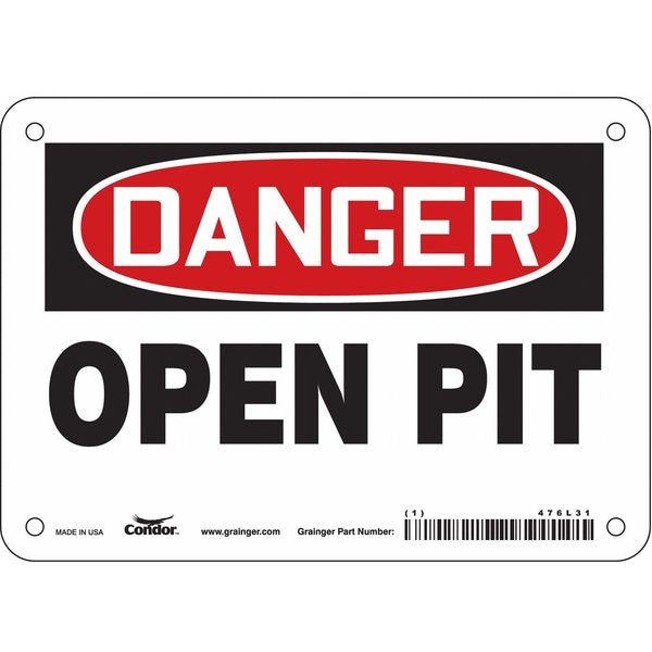 Safety Sign, Horizontal Rectangle, Number of Printed Sides 1, English, Sign Format Traditional OSHA, Sign Legend Open Pit, Sign Legend Background Color White, Sign Legend Style Text