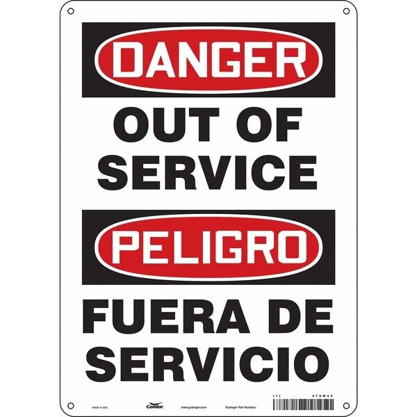 Danger, OUT OF SERVICE, 10 in W x 14 in H, Vertical Rectangle, Polyethylene, 479M45