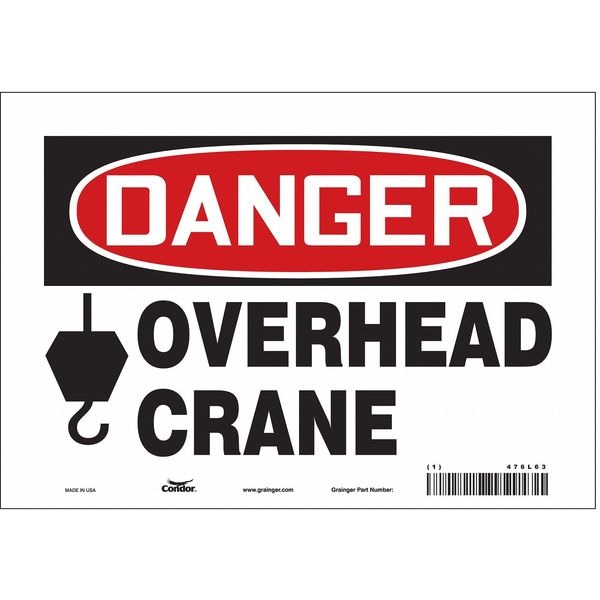 Danger, OVERHEAD CRANE, 10 in W x 7 in H, Vertical Rectangle, Vinyl, 476L63