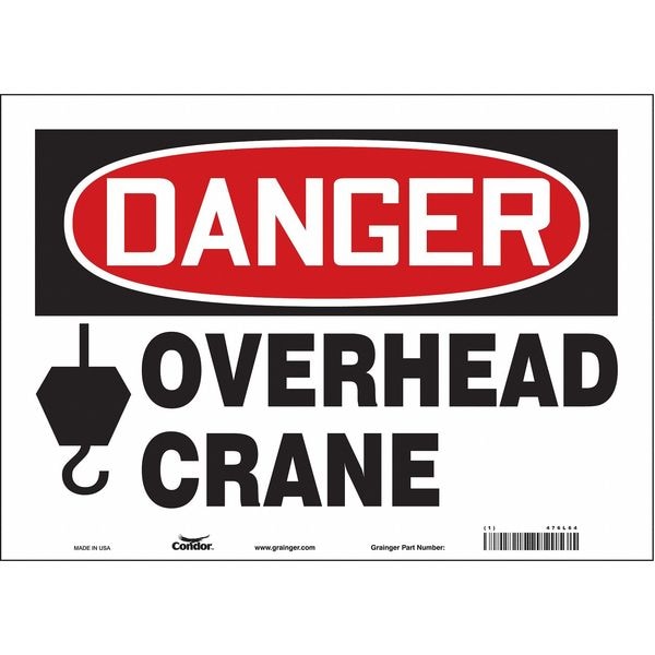 Danger, OVERHEAD CRANE, 14 in W x 10 in H, Horizontal Rectangle, Vinyl, 476L64
