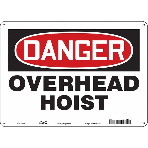 Danger, OVERHEAD HOIST, 14 in W x 10 in H, Horizontal Rectangle, Polyethylene, 476L69