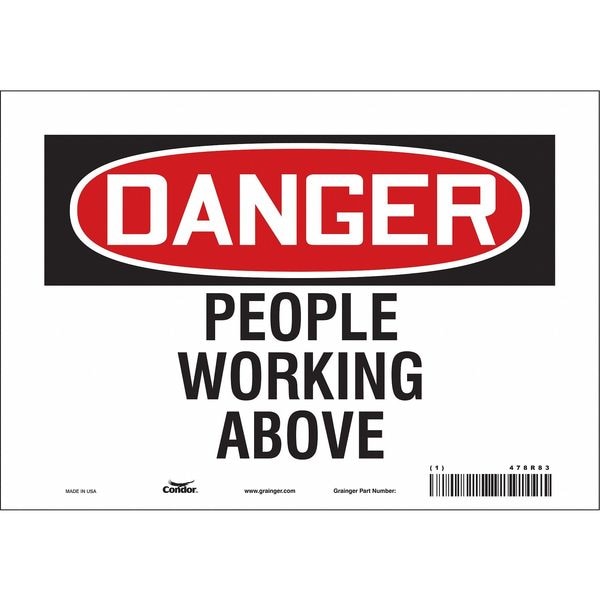 Danger, PEOPLE WORKING ABOVE, 10 in W x 7 in H, Vertical Rectangle, Vinyl, 478R83