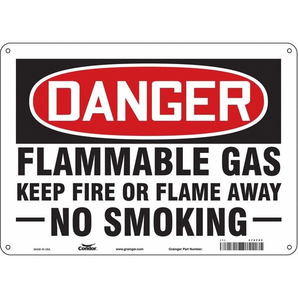 Danger Sign, Horizontal Rectangle, Number of Printed Sides 1, English, Sign Format Traditional OSHA, Sign Legend Flammable Gas Keep Fire Or Flame Away No Smoking, Sign Legend Background Color White, Sign Legend Style Text