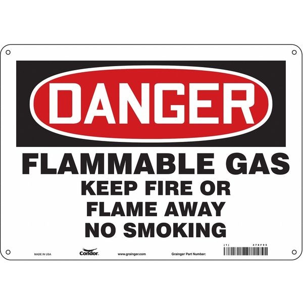 Danger Sign, Horizontal Rectangle, Number of Printed Sides 1, English, Sign Format Traditional OSHA, Sign Legend Flammable Gas Keep Fire Or Flame Away No Smoking, Sign Legend Background Color White, Sign Legend Style Text