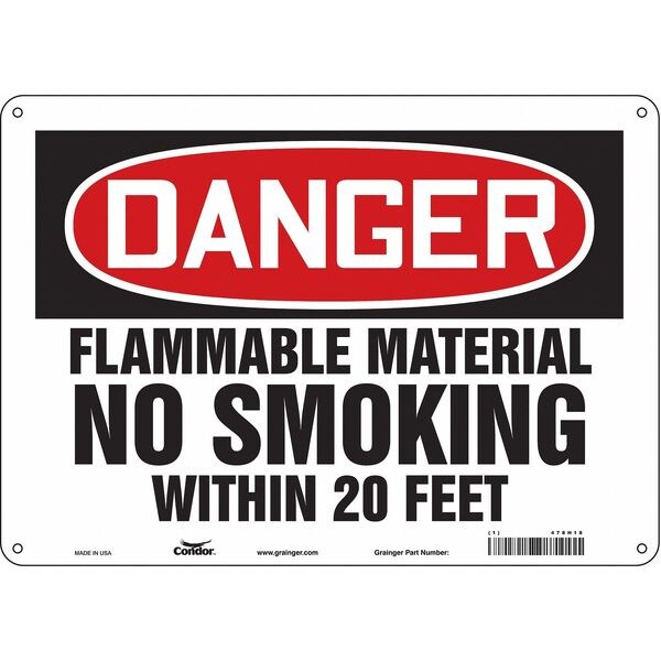 Danger Sign, Horizontal Rectangle, Number of Printed Sides 1, English, Sign Format Traditional OSHA, Sign Legend Flammable Material No Smoking Within 20 Feet, Sign Legend Background Color White, Sign Legend Style Text