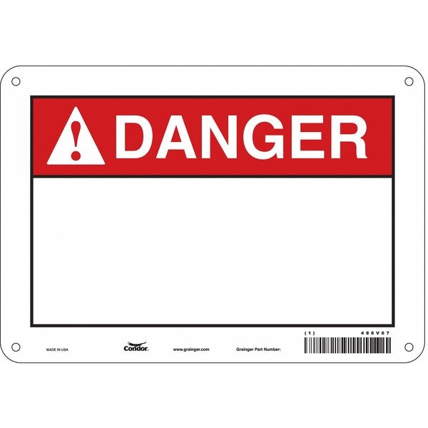 Danger Sign, 10" W, 7" H, English, Plastic, White