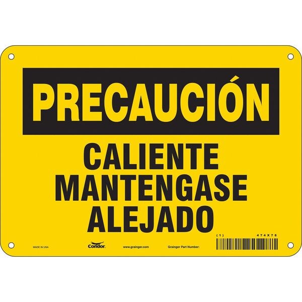 Safety Sign, Vertical Rectangle, Number of Printed Sides 1, Spanish, Sign Format Traditional OSHA, Sign Legend Caliente Mantengase Alejado, Sign Legend Background Color Yellow, Sign Legend Style Text