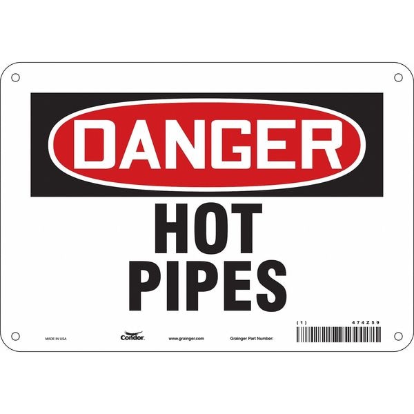 Danger Sign, Vertical Rectangle, Number of Printed Sides 1, English, Sign Format Traditional OSHA, Sign Legend Hot Pipes, Sign Legend Background Color White, Sign Legend Style Text