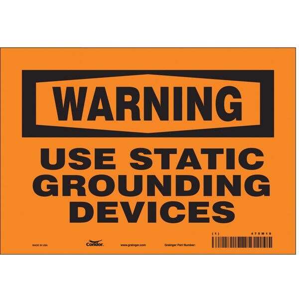 Danger Sign, Vertical Rectangle, Number of Printed Sides 1, English, Sign Format Traditional OSHA, Sign Legend Use Static Grounding Devices, Sign Legend Background Color Orange, Sign Legend Style Text