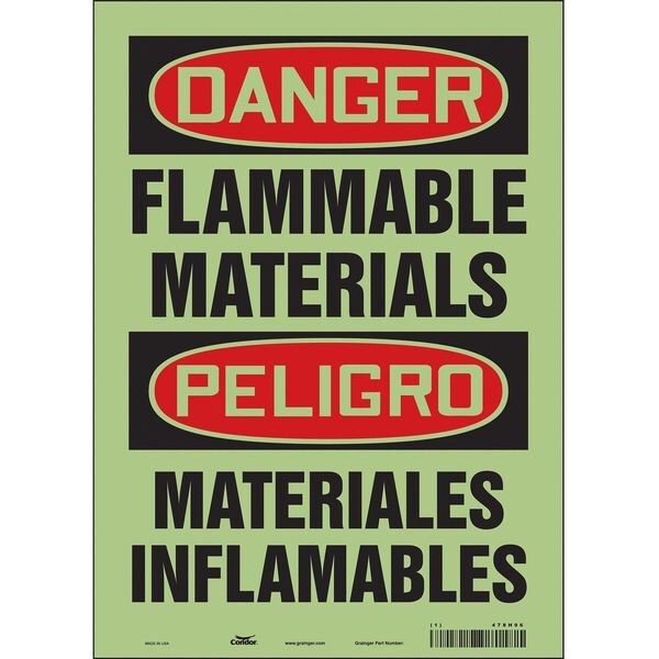 Danger Sign, 14 in Height, 10 in Width, Glow Vinyl, Vertical Rectangle, English, Spanish