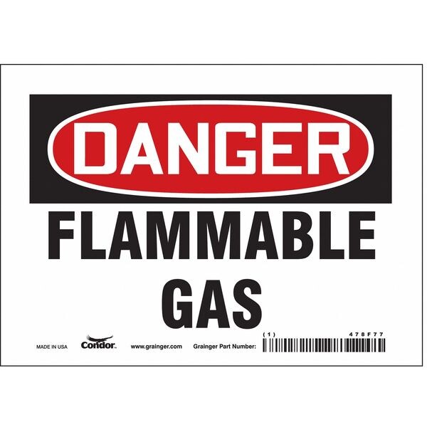 Danger Sign, Horizontal Rectangle, Number of Printed Sides 1, English, Sign Format Traditional OSHA, Sign Legend Flammable Gas, Sign Legend Background Color White, Sign Legend Style Text