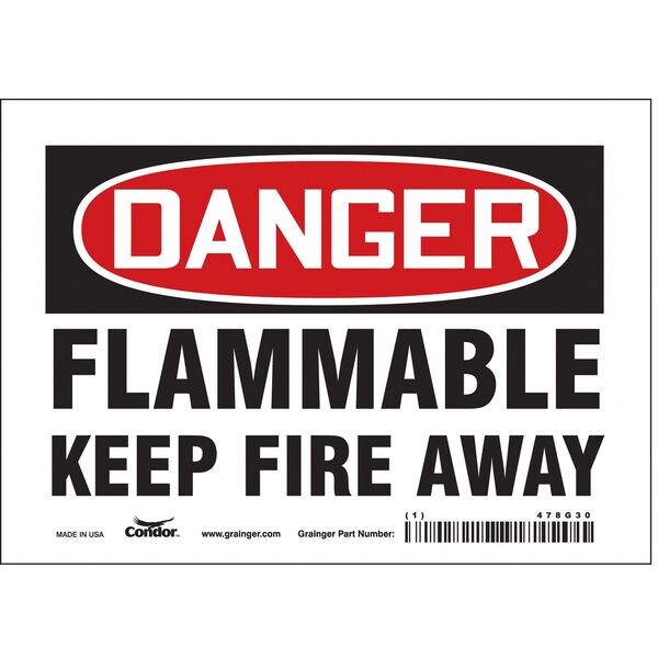 Danger Sign, Horizontal Rectangle, Number of Printed Sides 1, English, Sign Format Traditional OSHA, Sign Legend Flammable Keep Fire Away, Sign Legend Background Color White, Sign Legend Style Text