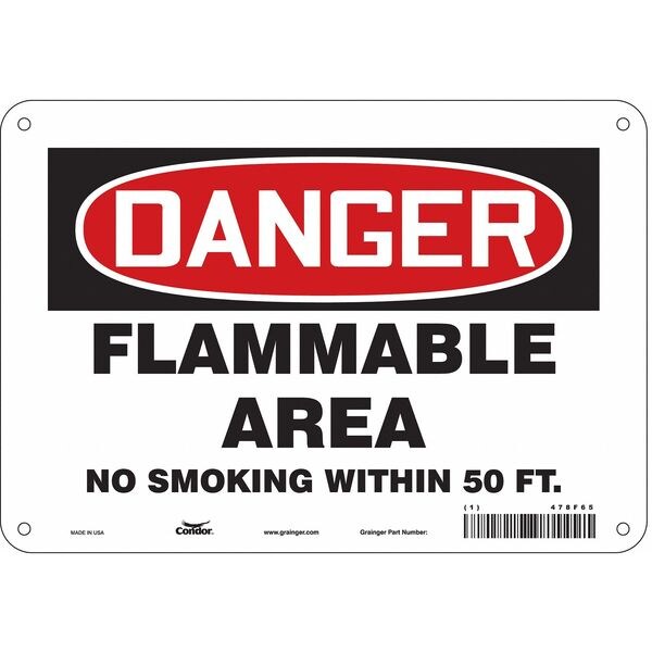 Danger Sign, Vertical Rectangle, Number of Printed Sides 1, English, Sign Format Traditional OSHA, Sign Legend Flammable Area No Smoking Within 50 Ft., Sign Legend Background Color White, Sign Legend Style Text