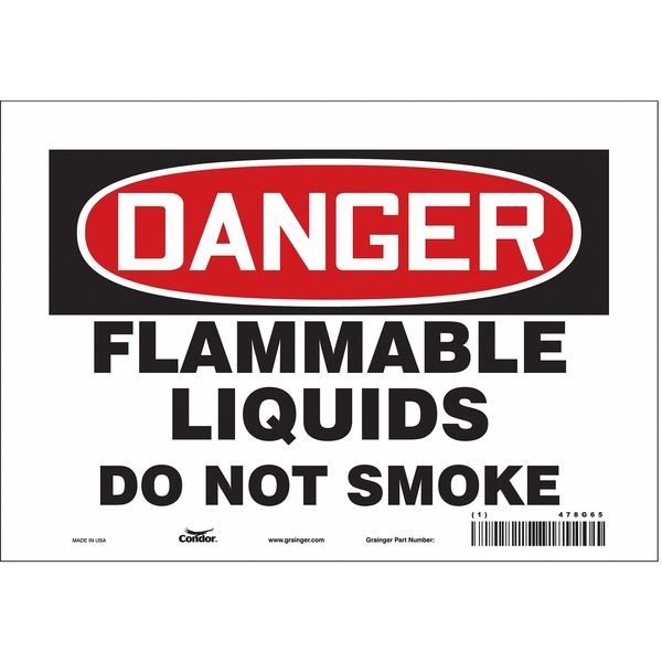 Danger Sign, Vertical Rectangle, Number of Printed Sides 1, English, Sign Format Traditional OSHA, Sign Legend Flammable Liquids Do No Smoke, Sign Legend Background Color White, Sign Legend Style Text