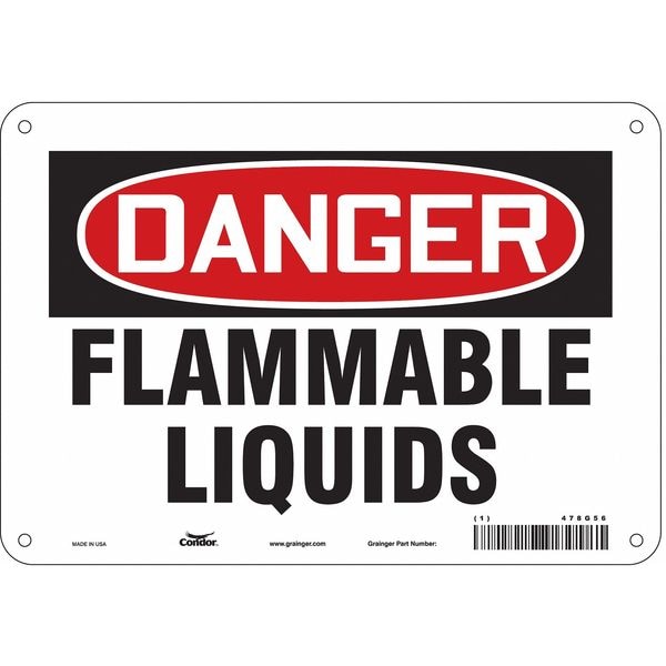 Danger Sign, Vertical Rectangle, Number of Printed Sides 1, English, Sign Format Traditional OSHA, Sign Legend Flammable Liquids, Sign Legend Background Color White, Sign Legend Style Text