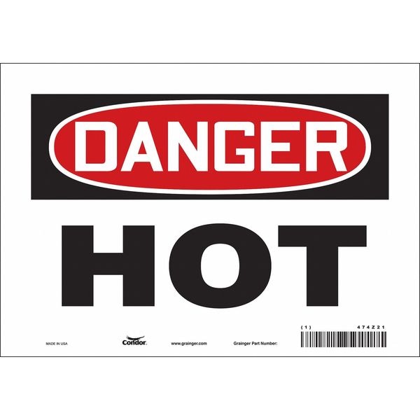 Danger Sign, Vertical Rectangle, Number of Printed Sides 1, English, Sign Format Traditional OSHA, Sign Legend Hot, Sign Legend Background Color White, Sign Legend Style Text